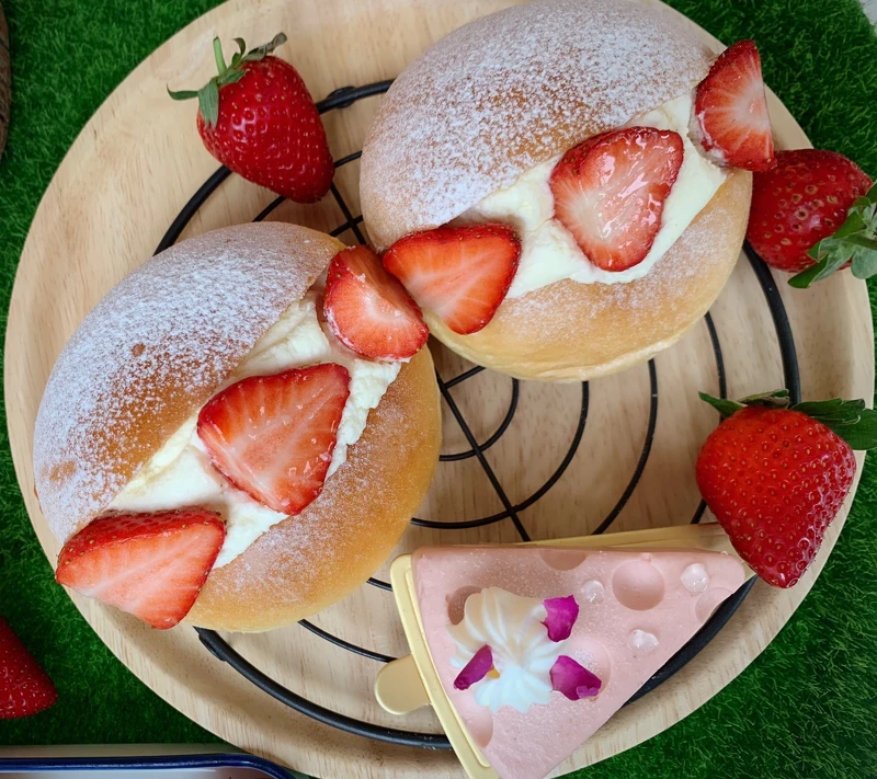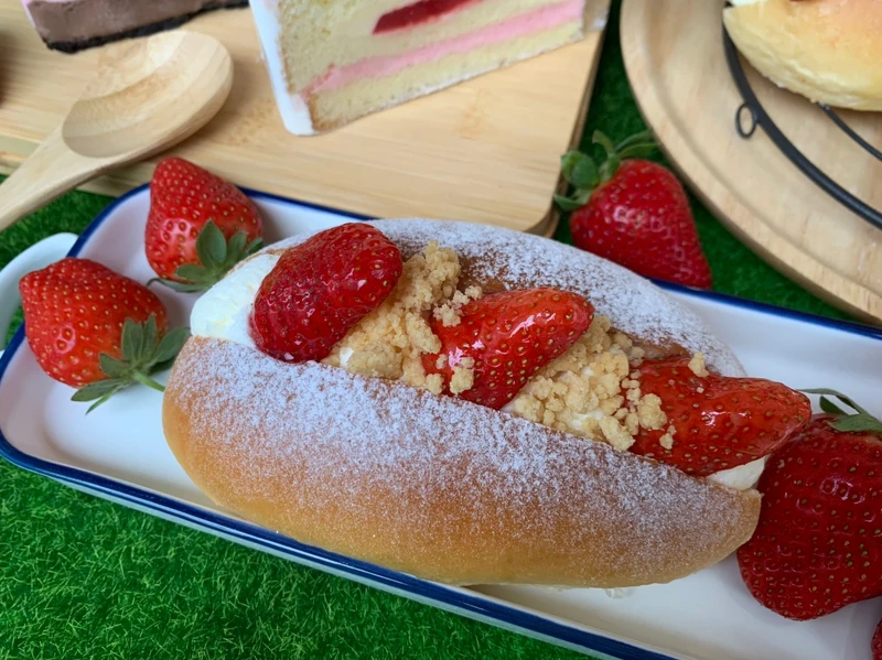 此外,全台麵包坊也推出了新品,嚴選法國諾曼第的愛樂薇鮮奶油,再加入五星級甜點店專用的義式傳統乳酪MASCARPONE,帶有滑順微甜的口感,搭配柔軟Q彈的布里歐麵團製作而成,草莓生乳包鬆軟輕盈的口感,內餡是一顆顆碩大草莓和特調奶霜完美融合,草莓控絕對不能錯過!