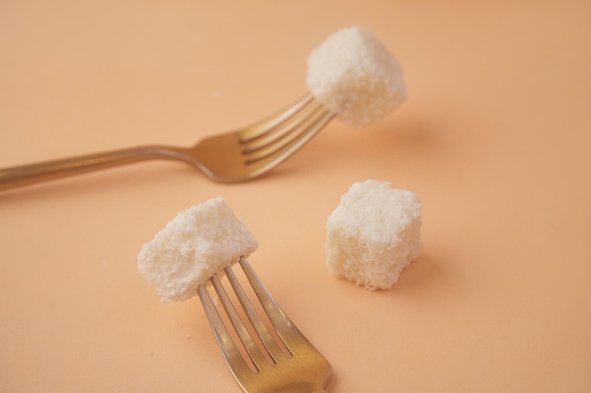 香濃滑順的泰奶醬是用泰國手標泰式茶葉熬煮製成!這款套餐中更加入椰子元素,椰子外層是用比利時牛奶巧克力搭配椰奶慕斯,最上方再擺上百香芒果凍妝點,將泰式南洋風情與日式鬆餅完美結合,不只超吸睛,還很好吃!