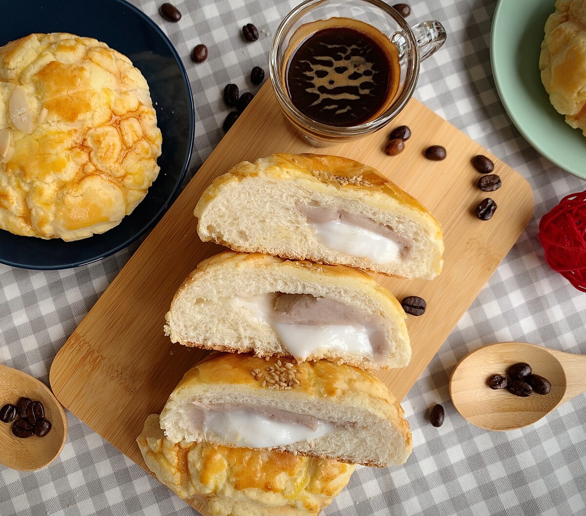 內餡則加入了芋泥、拔絲麻糬打造多層次口感,一口咬下感受香氣四溢的菠蘿麵包及甜而不膩的芋頭內餡,芋頭控們千萬不能錯過!