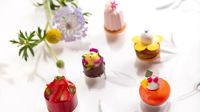 會不斷隨著時令、佳節推出期間限定菜單的「青隅」下午茶,迎接美好春天推出「春漾花語」下午茶。行政西點主廚趙崇曦將象徵春天百花盛開的意象,融入精緻甜點中,搭配酸甜水果、花朵吸睛外型,光用看的便叫人傾心不已。