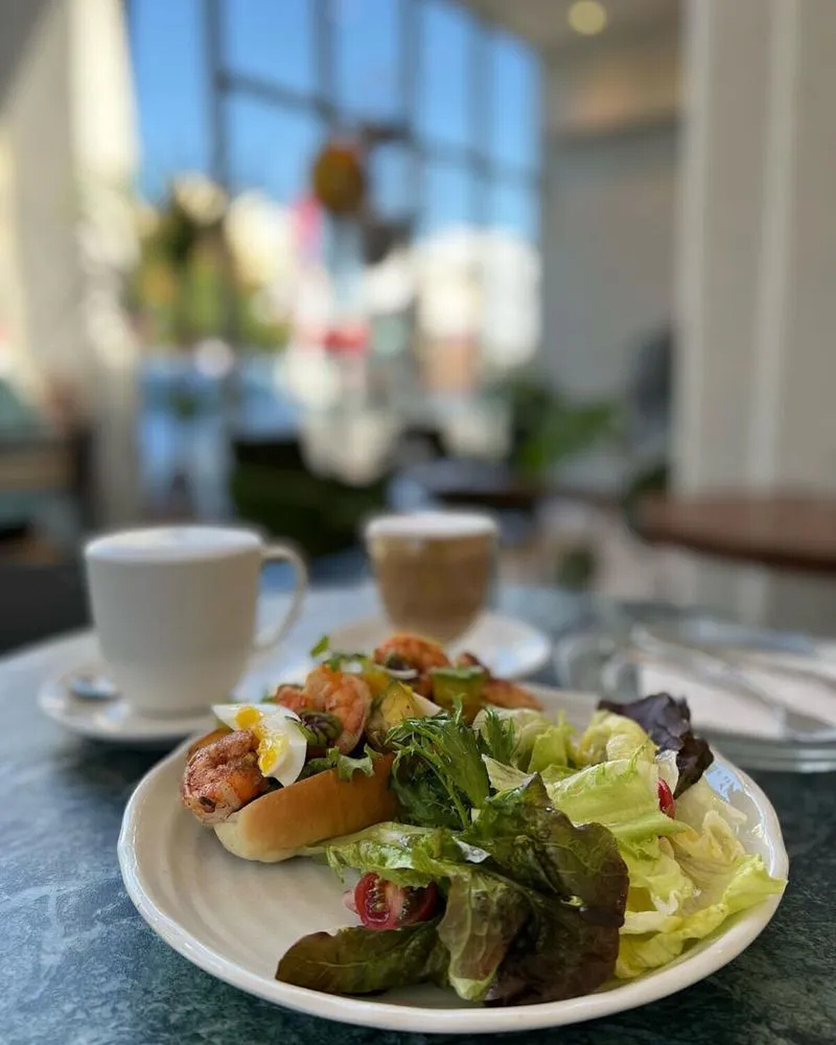 一進入店內,透亮的一整排落地窗讓人心曠神怡完全不擁擠!店內採自助取餐收餐盤,剛出爐的鬆餅搭上香草冰淇淋和巧克力醬搭配上新鮮香蕉,清爽解膩!餐點加上飲品,價位落在$200-300,CP值非常高,好吃又滿足!