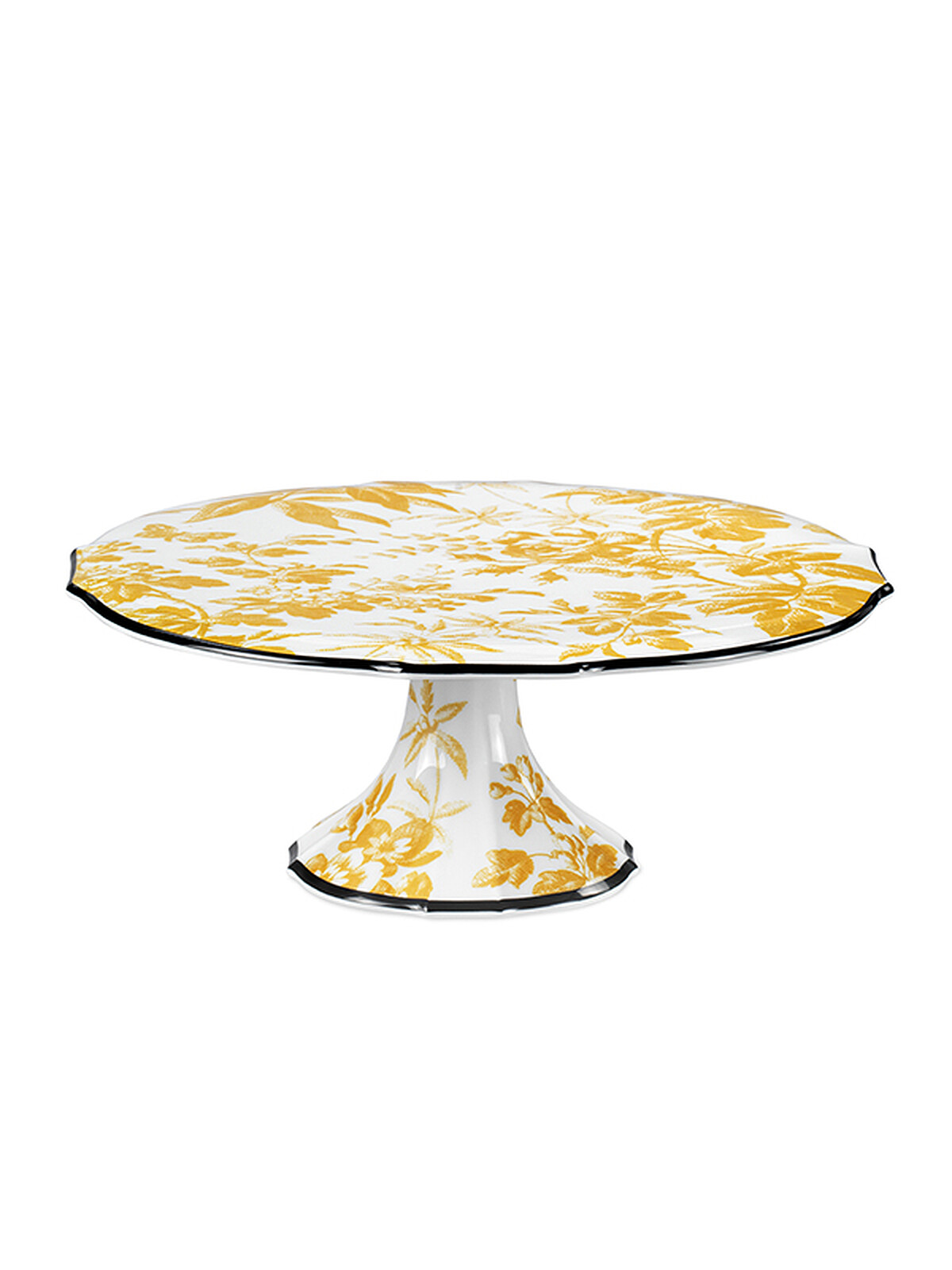 這系列餐瓷採用Richard Ginori瓷器精心打造,並飾以Gucci黃色臘葉印花圖案。由櫻桃枝條、葉片和花朵組成的印花設計圖案,靈感源自復古織物;妙趣橫生的設計,令人玩味再三。