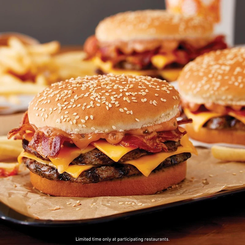 嚴選100%澳洲牛肉,為了保留保留肉汁的美味,以專業直火烤爐定溫370度快速火烤,炙燒後帶有獨特風味,再加入新鮮番茄、酸黃瓜、洋蔥及爽口的蔬菜打造出經典的火烤牛肉堡風味,每一口都能滿足饕客的味蕾!