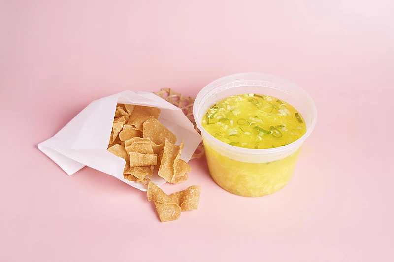 有別於傳統的蛋花湯,美式蛋花湯會搭配脆皮餅乾增添口感,別有一番風味!