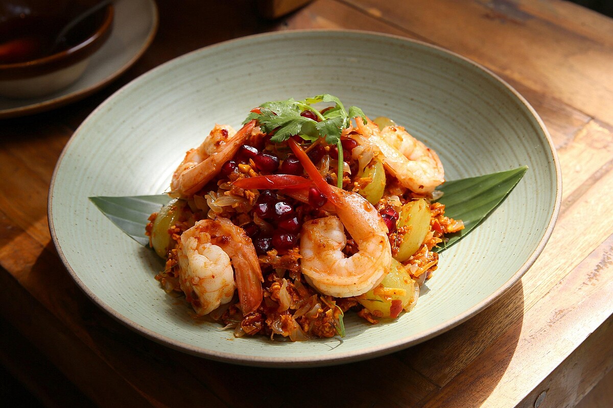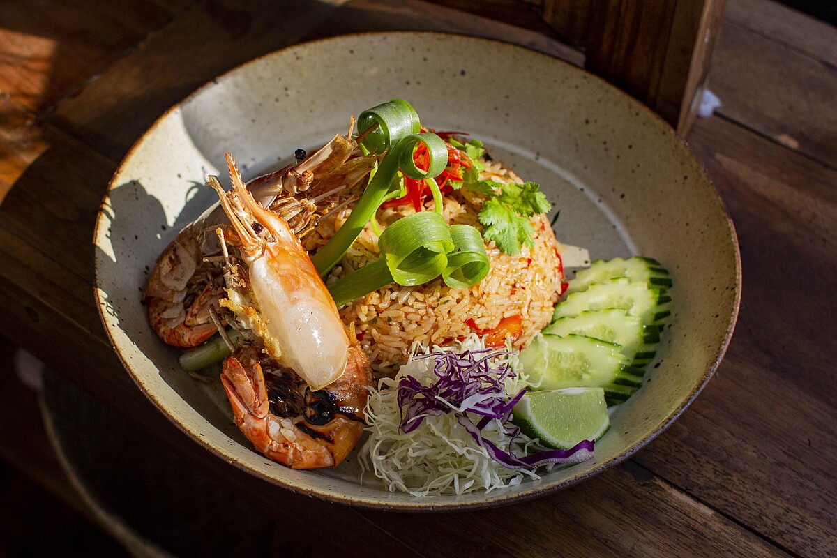 一道泰式經典家常菜色,也是初泰PIKUL隱藏版必點之一!加入冬蔭功醬、南薑、檸檬葉、香茅、辣椒、魚露等食材,將泰國米粒以大火拌炒至粒粒分明,讓飯粒吸飽香味,再配上泰國大頭蝦。每一口都香辣有勁,這款偏辣,嗜辣者不能錯過!