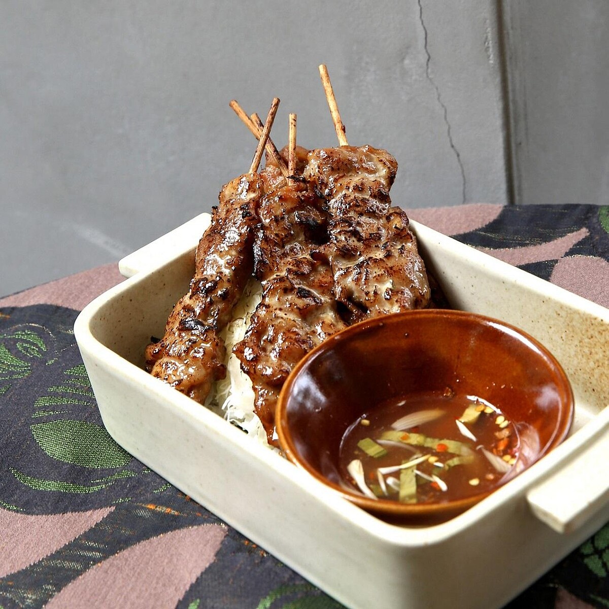 先將醃製好的豬五花肉,塗上奶水,再烤8分鐘。佐以泰式東北風味羅望子醬,在醬中加入泰國政宗的烤糯米粉,感受濃濃泰式風情!