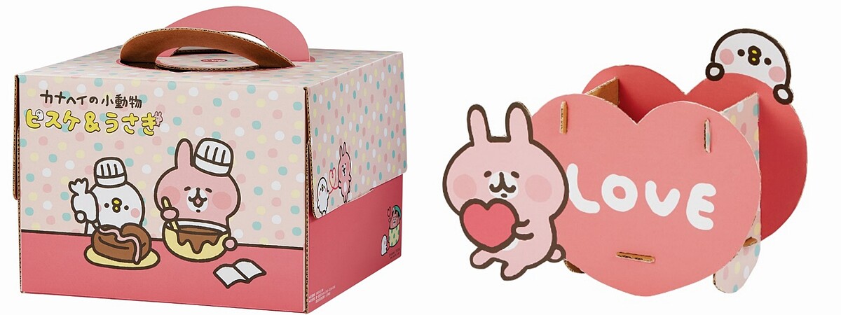 而造型蛋糕外盒除了印有烘焙大師P助和粉紅兔兔手做甜點塗鴉圖外,其實還有小巧思,大家可以將蛋糕盒內的墊高板,拆下DIY變身為卡娜赫拉的小動物置物架,不只實用環保,還很可愛,各位卡娜赫拉粉絲們快來試試吧!