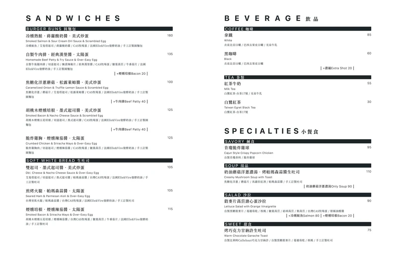 減少加工品也是FAST CASUAL的精神之一,the TOAST · PROJECT的美式漢堡、三明治都是現點現做,麵包結合台灣甜麵團與美式布里歐概念,無論圓麵包或是生吐司都是手工訂製,Q軟又充滿奶香,帕瑪森蒜醬、松露萊姆醬等各類醬料也是自製,配上半熟蛋料理,餡料相當澎派,光看照片就食慾大開,一口咬下不只滿足,還能感受到食材的用心。