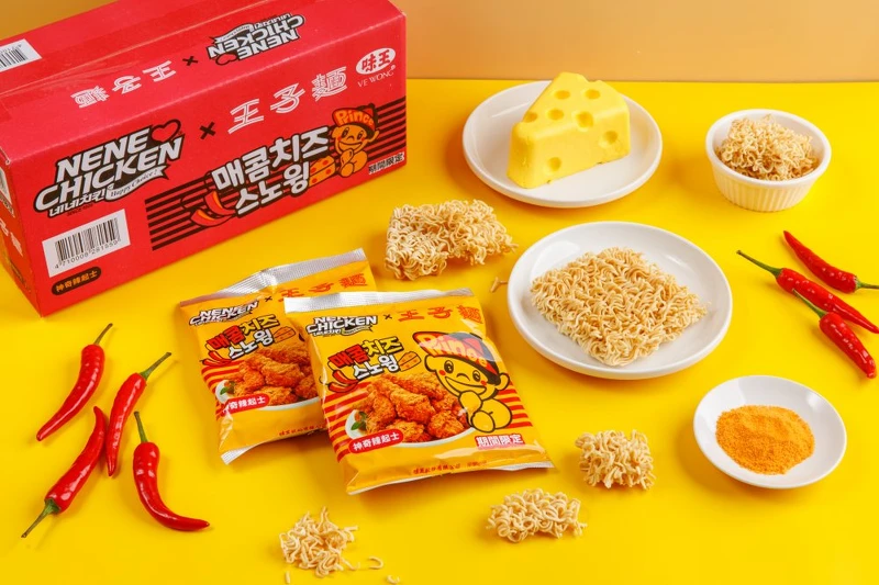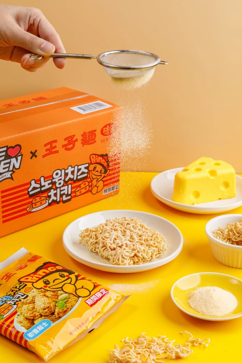 韓國人氣炸雞NENE CHICKEN與台灣味王王子麵攜手合作限量推出期間限定的炸雞王子麵!以NENE CHICKEN必吃招牌口味初雪起士炸雞、神奇辣起士炸雞,製成獨家調味粉,搭配王子麵香脆口感,打造最涮嘴的全新零食,讓大家追劇時又有新零食可以配啦!