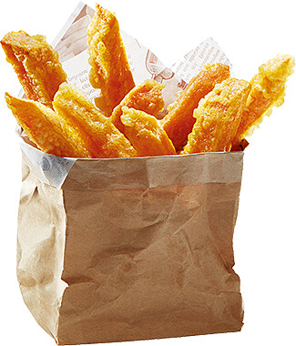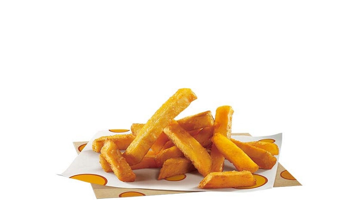 其實摩斯漢堡也有販售地瓜薯條!黃金地瓜薯採用台農57號蕃薯製作而成,油炸後呈現金黃的色澤,一口咬下外酥內鬆軟,帶有地瓜自然的香甜風味。
