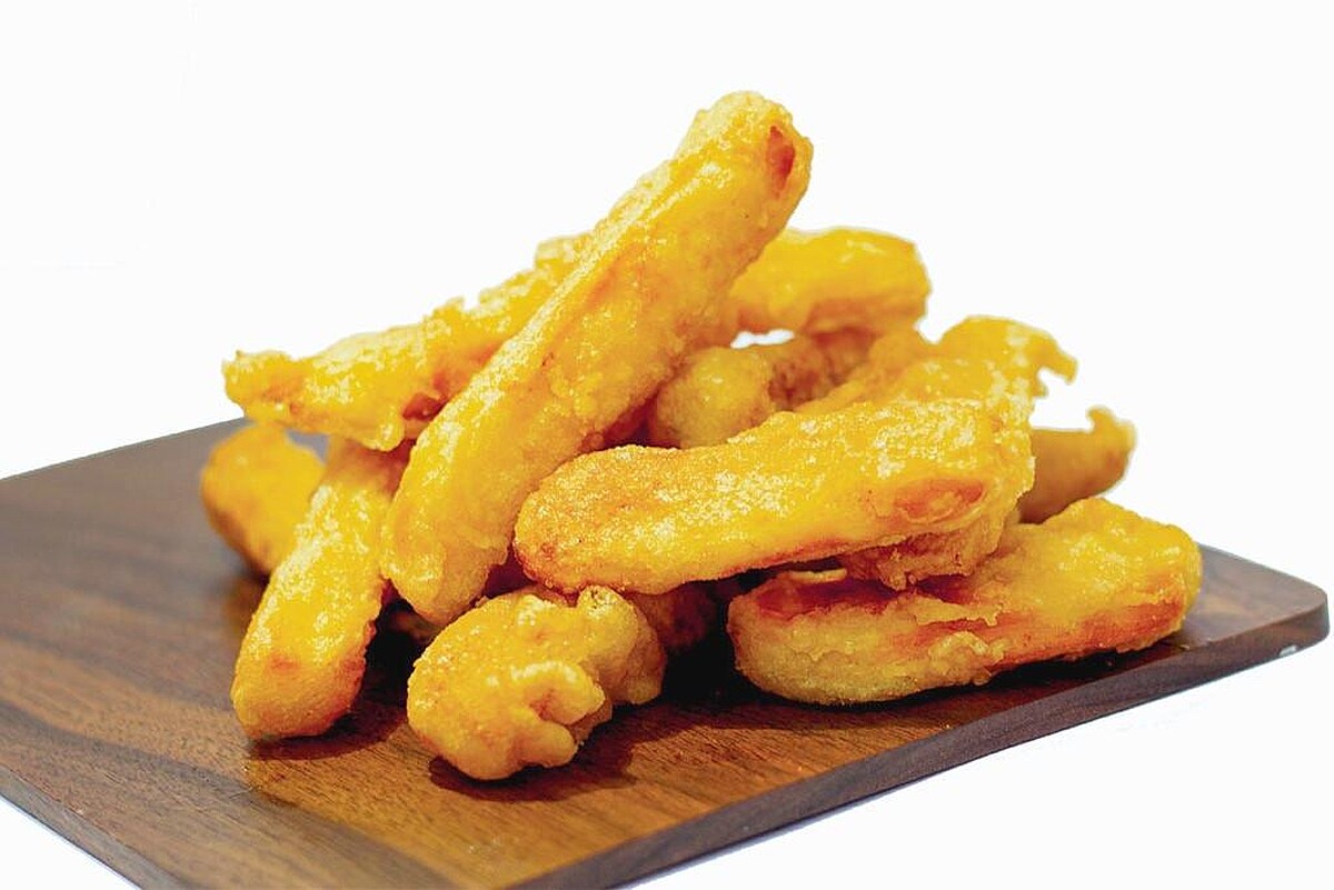 採用台農49號水林地瓜,以刀工切條後,透過二次低溫炸製的工法及精密的炸製時間分離技術,讓黃金番薯條帶有綿密水份,伴隨奶香味,也是人氣必點之一!