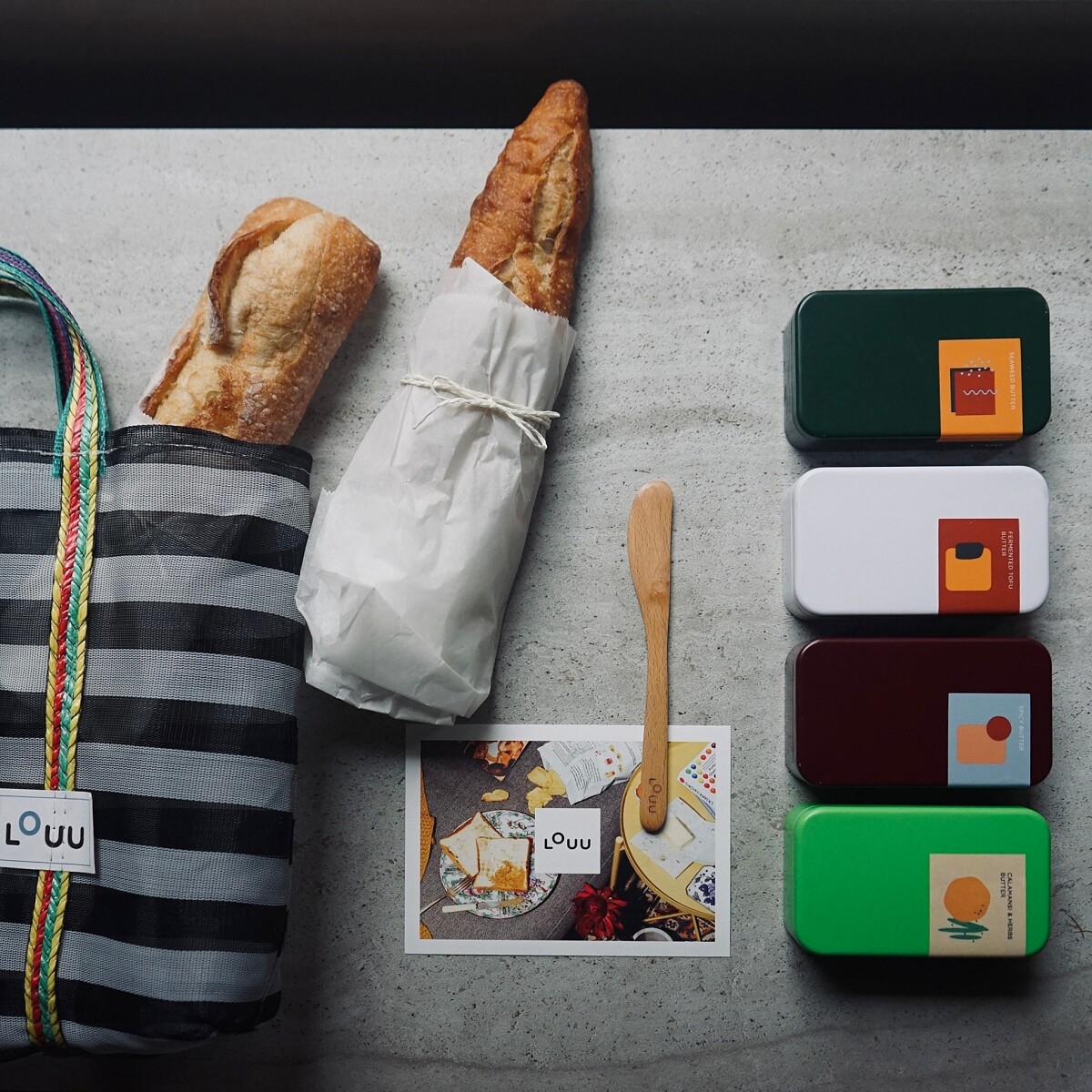 Purebread 法國長棍麵包25cm x2、LOUU 微辣奶油 150g x1 、LOUU 昆布鹽奶油 150g x1 、LOUU 發酵豆腐奶油 150g x1 、LOUU 酸桔香料奶油 150g x1(新品) 、LOUU 奶油抹刀 x1 、LOUU 明信片 x1 、LOUU 茄芷袋 x1,售價NT1,200