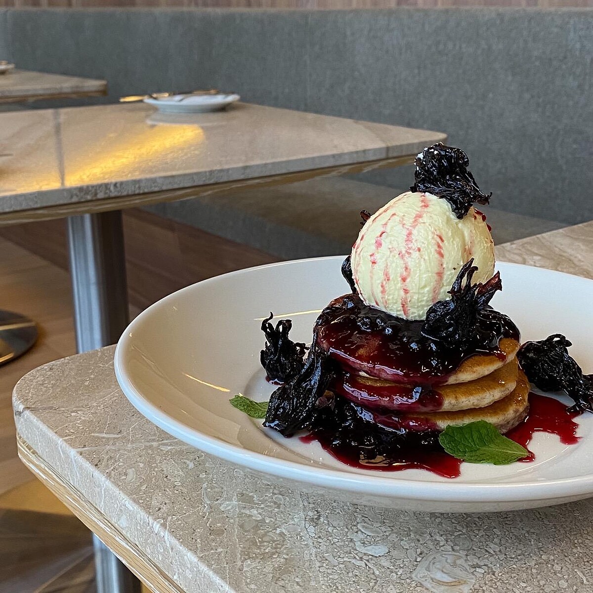 將ACME自製洛神花醬淋在酸甜莓果上,搭配主廚特製的全麥鬆餅,讓人大口吃甜點的同時也不會有負擔!