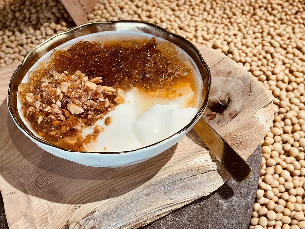 來自日本老闆YoShi優喜秉持著職人精神透過古法直火煮漿手法,再融合日本傳統美食「寄豆腐」而打造而成的美味豆花,口感與質地細緻柔和,黃豆香氣和甜味更明顯充足!
