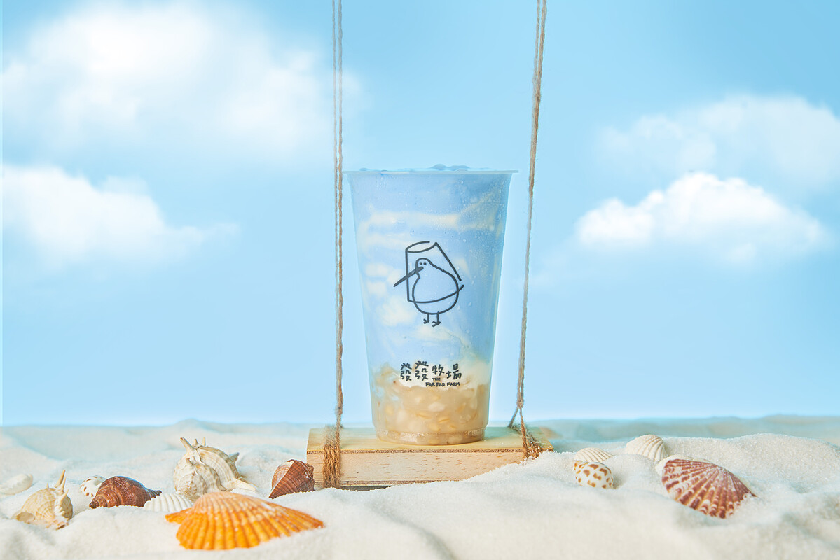 而「晴空朵朵鮮奶茶」則以熱銷茶王翡翠高山青茶加入台農崙背鮮乳,同樣添加「鮮奶Q凍」打造雙倍奶香,天空般的藍白漸層也是夢幻破表。