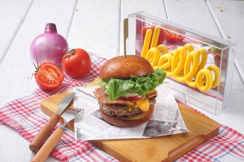使用知名烘焙坊Purebread Bakery出產富濃郁奶蛋香之布里歐麵包,再夾入五盎司純牛肉排、煙燻培根、烤牛番茄、太陽蛋、酪梨、墨西哥辣椒,再淋上誘人的起司醬,完整呈現道地美式經典風味,每一口都讓人好滿足啊!