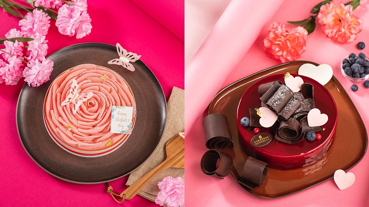台北遠東香格里拉館內The Cake Room推出兩款母親節限定蛋糕,「舞蝶玫瑰園」有著粉嫩玫瑰花造型,蛋糕主體為綿密起司蛋糕,配上野莓醬交織酸甜好滋味;「冰紛莓一刻」則融入覆盆莓與開心果兩種冰淇淋,外層則有酒紅鏡面,以及巧克力製成的緞帶,兩款都美到捨不得吃!