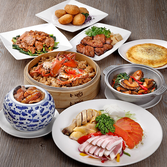 《欣葉台菜》連4年獲得米其林餐盤推薦名菜,這次推出6人套餐,包含8道經典料理:精選拼盤(烏魚子/軟絲/鹽水土雞)、三杯九孔杏鮑菇(九孔6粒)、金錢蝦餅(6粒)、XO醬炒牛肉、香煎豬肝、魚翅佛跳牆、正宗菜脯蛋、紅蟳米糕、欣葉麻糬,享用星級菜色犒賞美麗的媽媽。