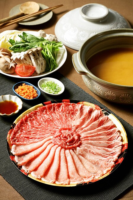 鍋底以奶油、洋蔥及大蔥爆香過,推薦大家可以加入A5日本和牛肋眼肉片,佐以香甜的日式壽喜燒醬汁,入口感受軟嫩口感,搭配台灣在地風味的豐盛菜盤,從視覺、嗅覺到味蕾一次滿足!
