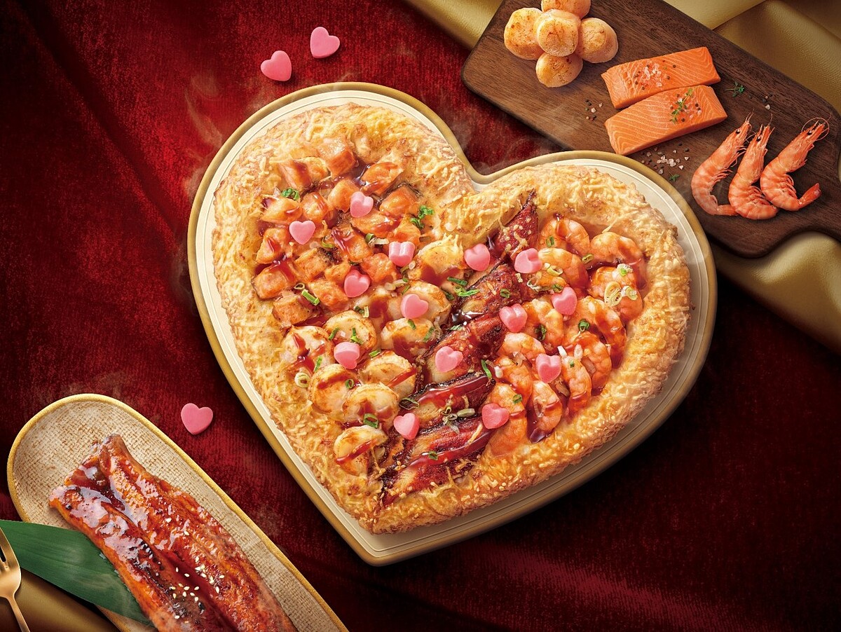 另外「愛鰻滿!特盛比薩」則延續去年限定登場的愛心造型披薩,愛心餅皮結合4款豪華海鮮,包括日式頂級厚切蒲燒鰻魚、鮮嫩多汁大干貝、Q彈大蝦以及軟嫩炙燒智利鮭魚,肯定是最豪華的母親節美味。