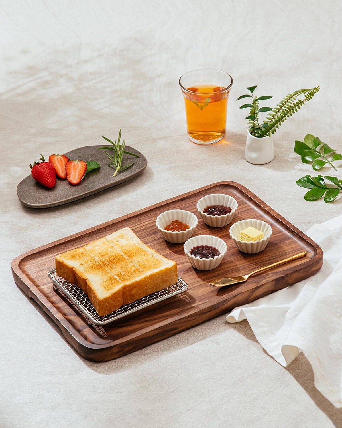 嚴選英國米其林餐廳主廚創辦的LBJ 果醬,用不超過四種天然成分製成,再搭配口感柔軟的生吐司,感受優雅細緻的香氣,讓人忍不住一口接一口。推薦大家也可以加點一份純手工製作的純植奶油,別有一番滋味!