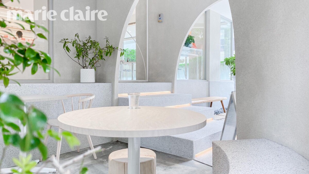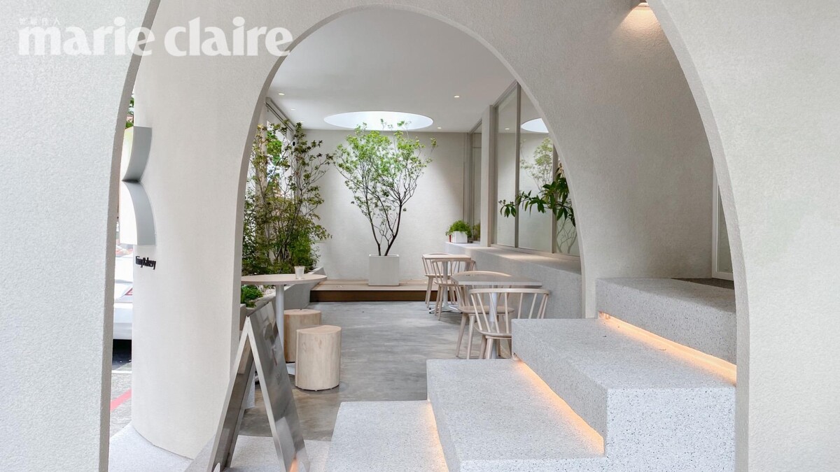 《Blivin Bakery》的用餐空間充滿創意巧思,以店名《Blivin》的B為發想,宛如山形吐司般延伸出拱門的意象,連天花板都設計成拱門造型!推開大門映入眼簾的室內空間,同樣以白色為主軸,而室內空間內看似純白的設計,其實是使用了多種「白色」組合而成,由米白、象牙白、珍珠白…等交織而成,打造出充滿深度的白色,再搭配原木傢俱與落地窗,通透感十足,讓人非常放鬆。