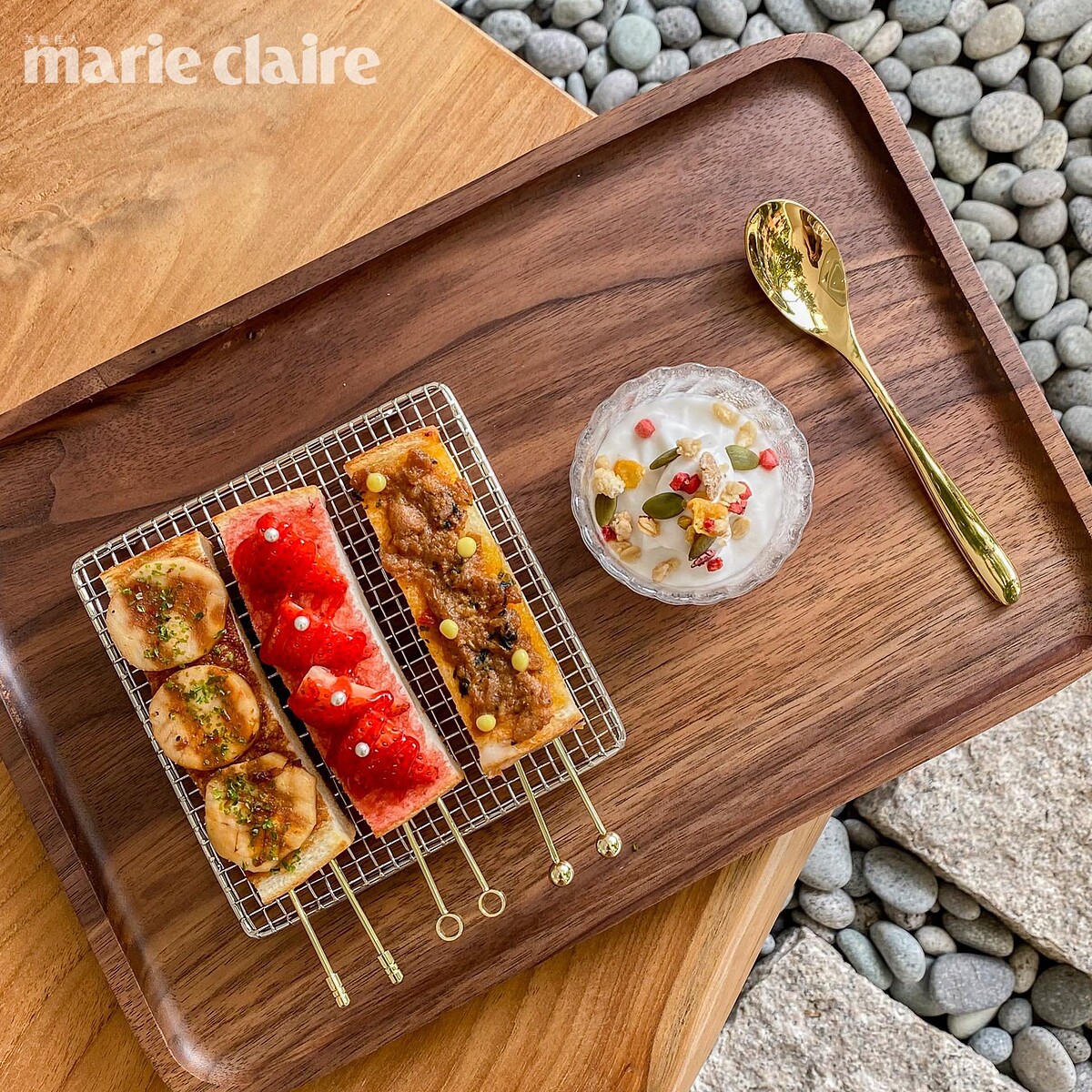 讓大家一次擁有3種口味!在一條條吐司上鋪滿色彩繽紛的食材,讓人驚喜的是配料、醬再搭配烤得香酥的吐司真的很好吃,而一旁的希臘椰奶優格非常清爽,串串吐司不只超好拍還很好吃!