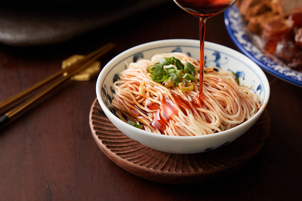 黑武士麻辣火鍋創店老闆早期是從麵食起家,因此麵食成了本店招牌,在這裡不提供白飯,而是推出蔥花拌麵,麵條中的靈魂是古早味獨門醬汁,是讓人一吃就上癮的滋味。