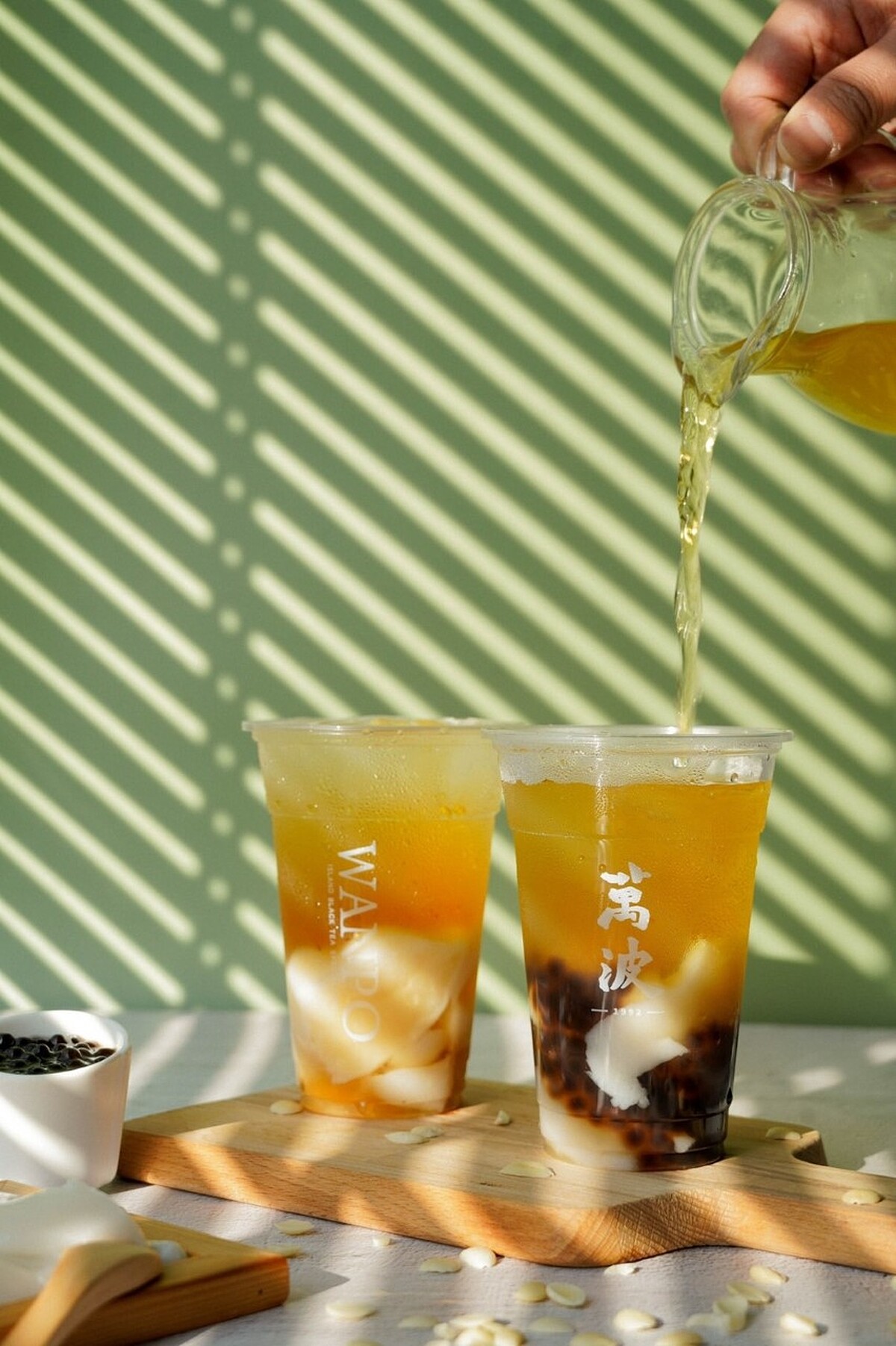 《萬波》「杏花雨露」、「珍杏七水仔」將於5月13日在全台萬波門市與線上點餐、外送平台(你訂、Uber Eats、foodpanda)同步發售。