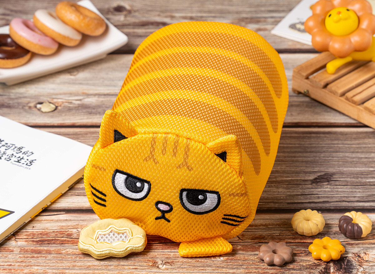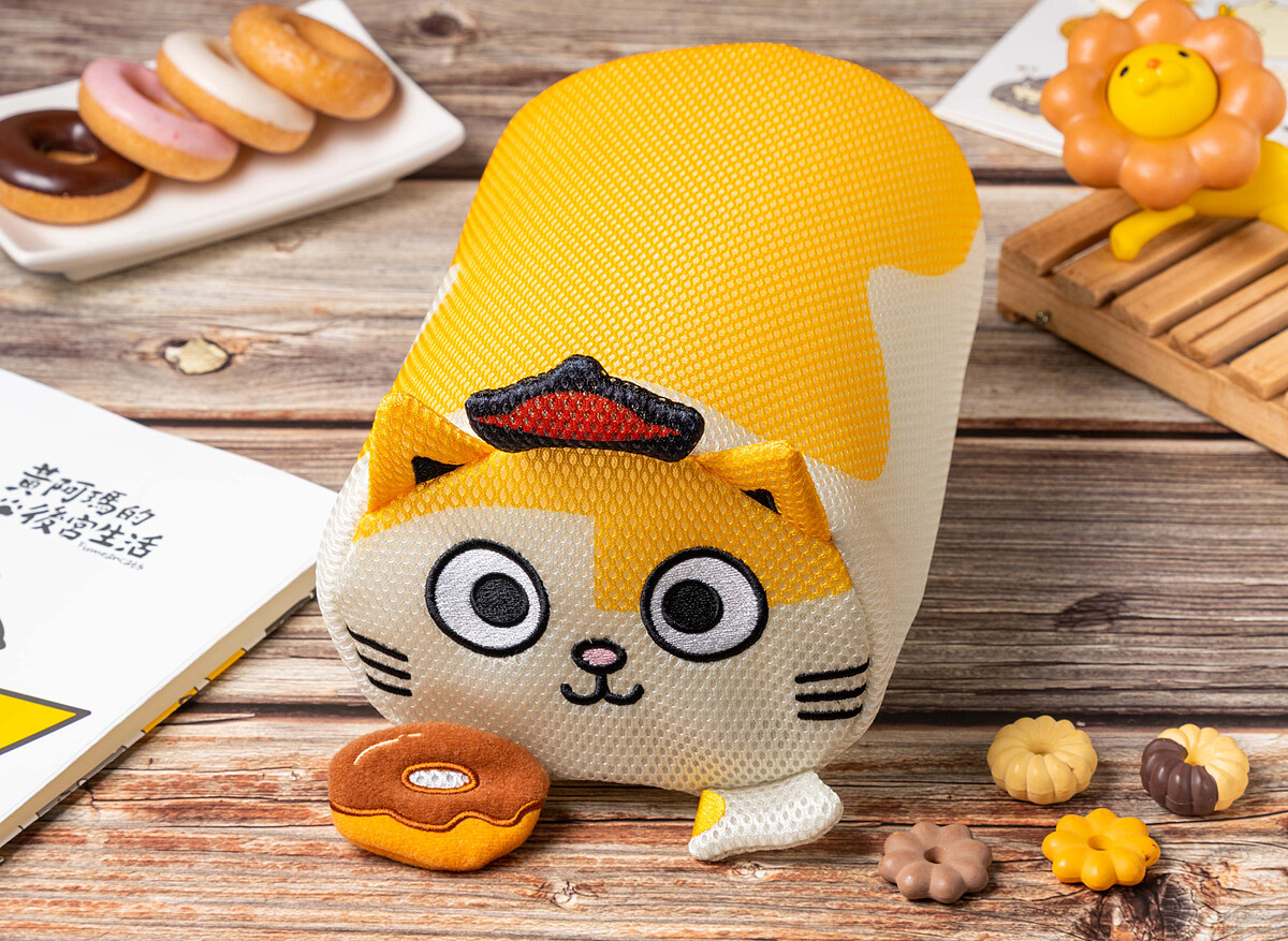 共有4款造型,分別有手拿甜甜圈的黃阿瑪、柚子、嚕嚕、Socles。不論是收納、洗衣都可以,絕對是貓奴必收的實用周邊!