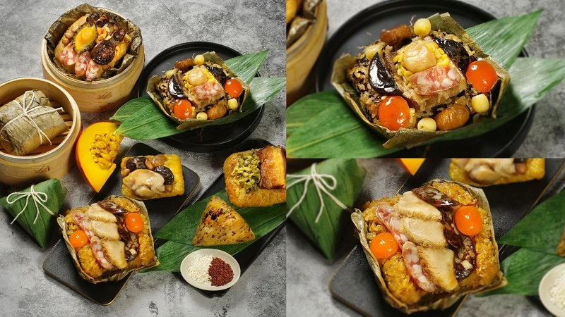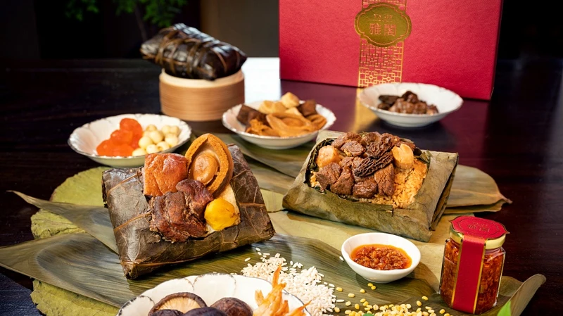 坐擁多間人氣餐廳的台北晶華酒店,主打由米其林餐盤推薦晶華軒推出的「頂級盆菜裏蒸粽」,有整顆鮑魚、海蔘、伊比利火腿與花膠的600克奢華粽子,以及含鹹甜粵式口味的「米其林粽香禮盒」。另外順應健康飲食風潮,推出三元及第粽、總鋪師竹香粽等兩款不到100克的迷你粽,超多種選擇勢必滿足你的挑剔味蕾。
