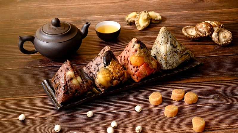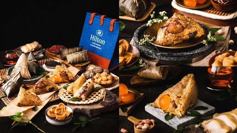 台北萬豪酒店邀請有40年料理資歷的「國宴主廚」高鋼輝與團隊,共同研發「萬豪經典粽禮」,內含豪華牛肝蕈鮑魚粽、福虎粽、羊肚蕈紅藜麥養生粽、百合紫米粽等5顆人氣口味,另外還有鋪上牛筋與牛腮的冠軍犇牛粽、選用櫻桃鴨的鴨香寶粽,並販售「采采食茶」的手工人氣冰心甜粽禮,茶香青梅粽、楊枝甘露粽兩款同時滿足視覺與味覺,送禮超風光!
