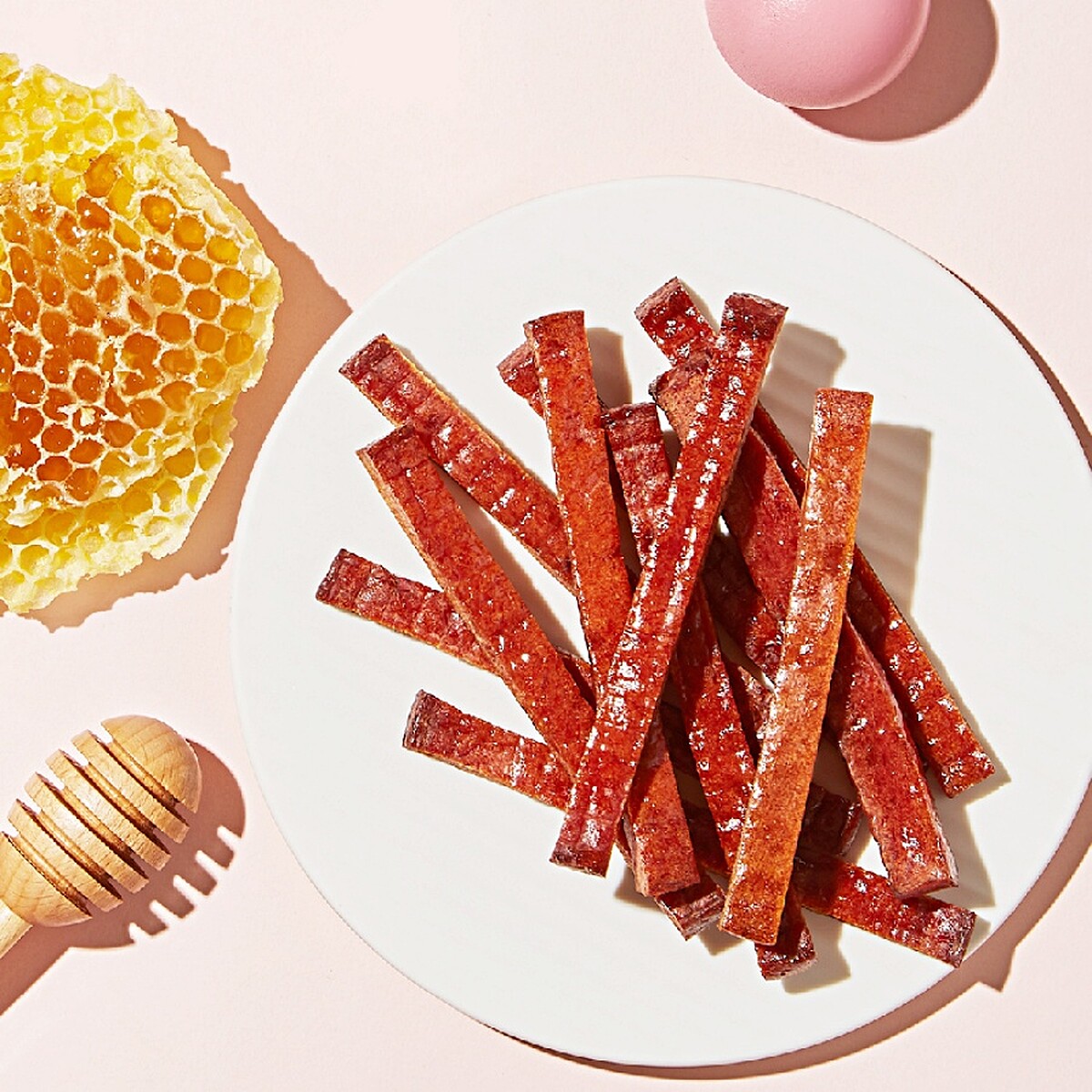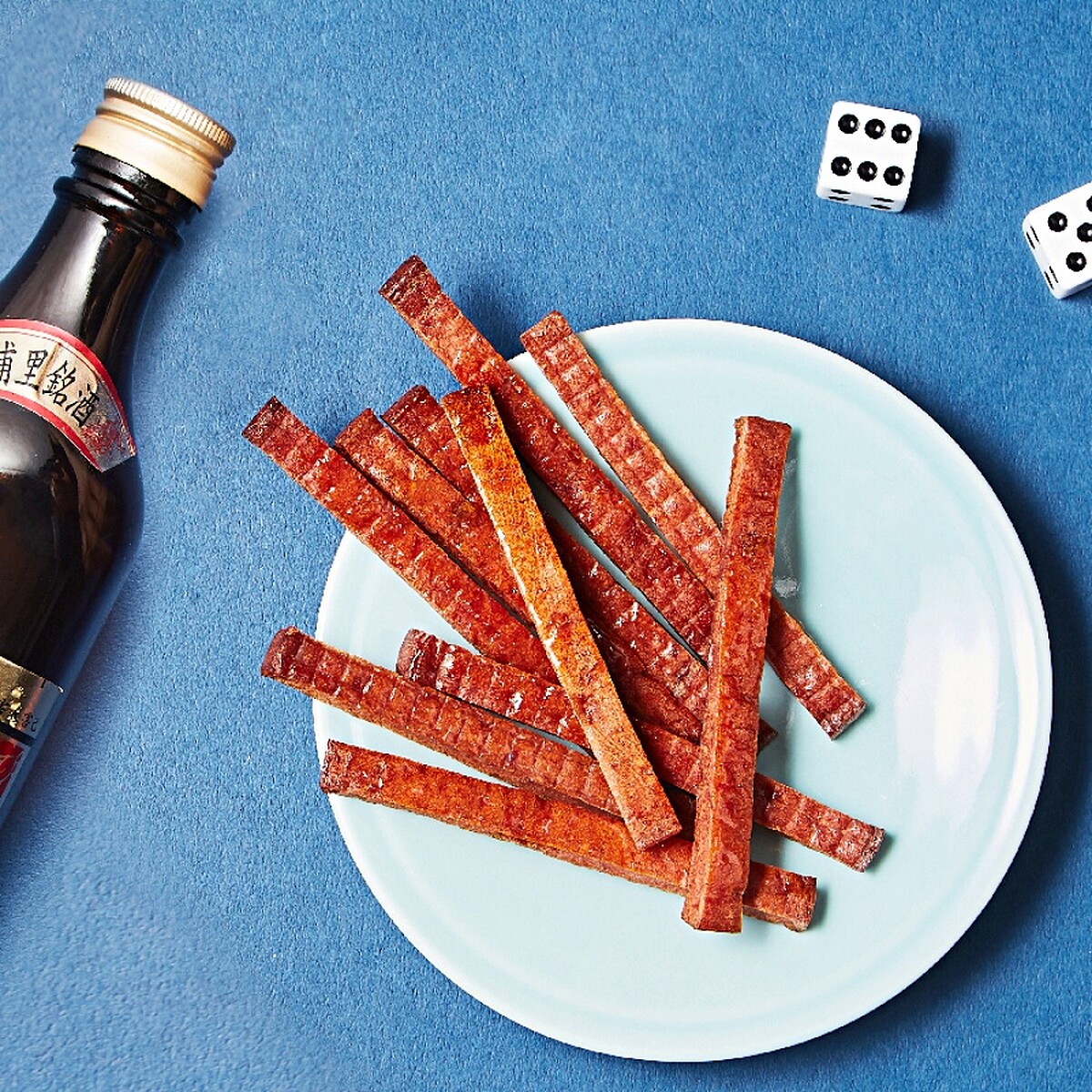 以創辦人家傳的獨門蜜汁醬料研製而成,微甜的獨門蜜汁與日式醬燒搭配,透過職人細心烘烤,讓一公分厚切肉乾Q彈帶有咬勁,真的超涮嘴!