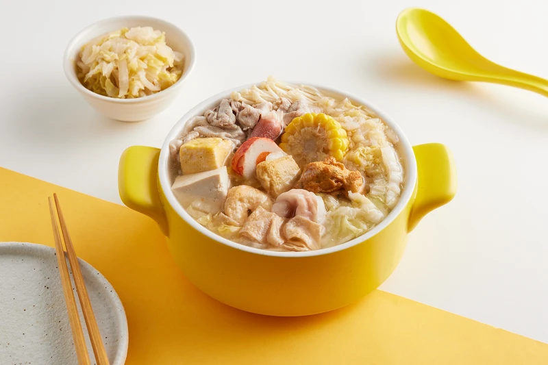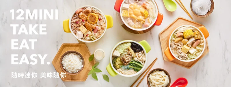 王品集團旗下的平價火鍋除了《石二鍋》外,《12MINI快煮鍋》菜單多元的湯頭也深受火鍋控喜愛,主打新鮮現煮的即食鍋物,除了內用外,外帶回家就能馬上開吃!《12MINI快煮鍋》價格雖平實,但細節不馬虎,饕客還能自由挑選有九層塔花枝貝、起司魚豆腐等火鍋料的「漿漿好」,或替換為美白菇、玉米筍等時蔬的「菜菜好」組合,打造出個人口味的小火鍋!