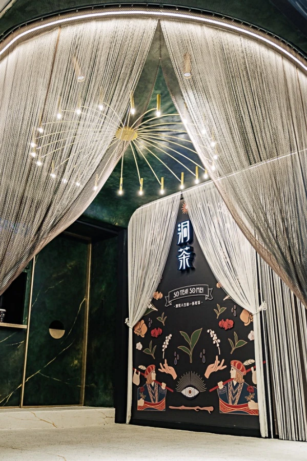 全新手搖飲品牌「洞茶」店面鄰近捷運松江南京站,但「洞茶」可不是一般的手搖飲店,店內華麗且神祕的裝潢有種來到塔羅占卜店的錯覺!有趣的是不只是裝潢,連茶飲都與塔羅占卜結合!