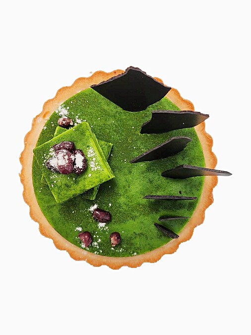 「抹茶優格塔」則加入了日本宇治金時抹茶粉、頂級法福娜可可籽製成生巧克力,讓優格塔呈現出輕奢華麗的視覺與口感。