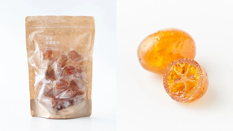 堪稱嘴饞、追劇良伴的金棗蜜餞,特別與曾獲選2019蘭陽嚴選評鑑亞軍的農家合作,多年檢測零檢出農藥,以純糖蜜漬,不添加色素、香料與防腐劑,連金棗外皮都能一同食用,擁有甜而不膩的好滋味。