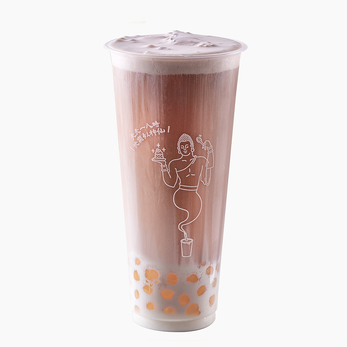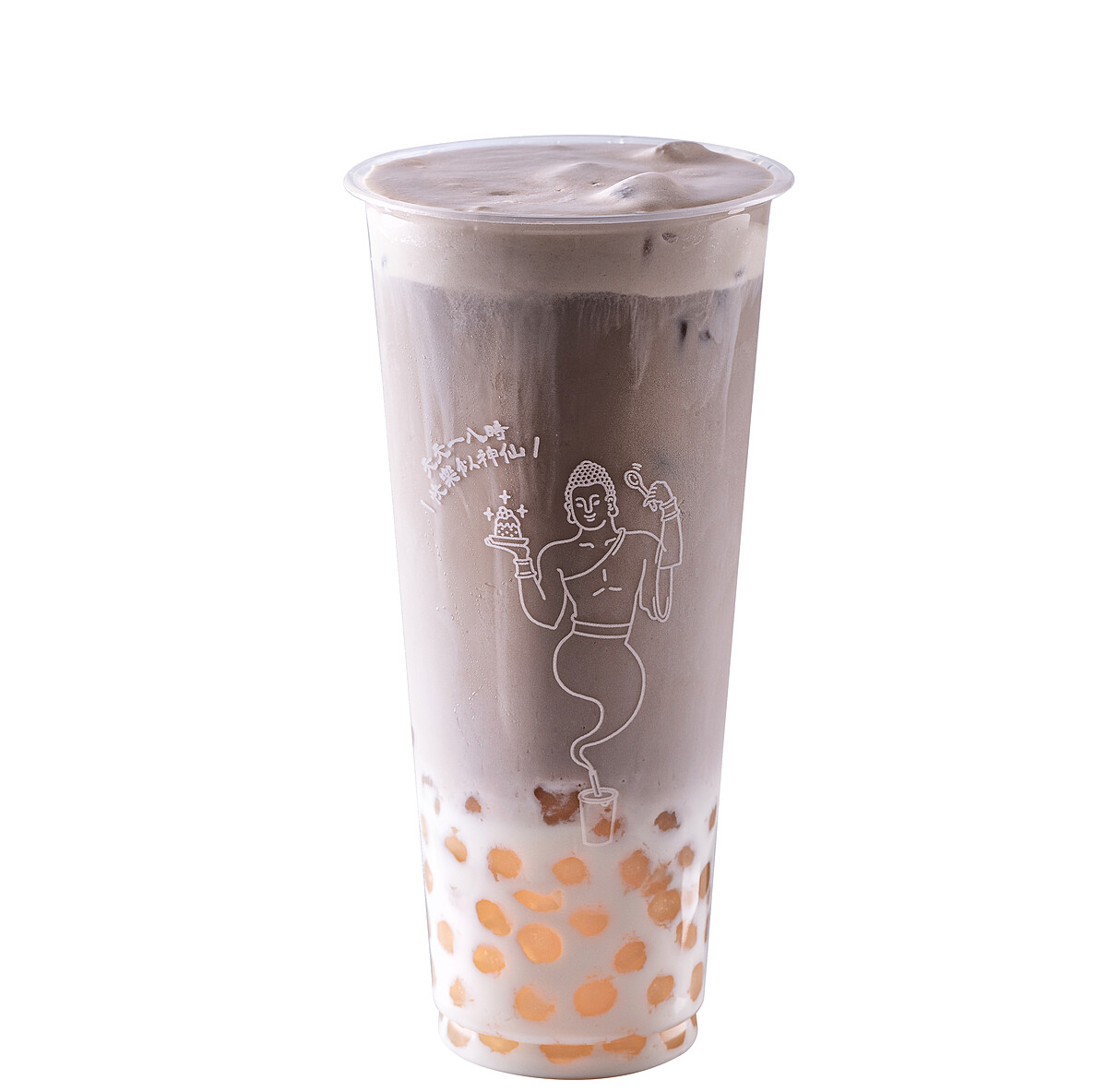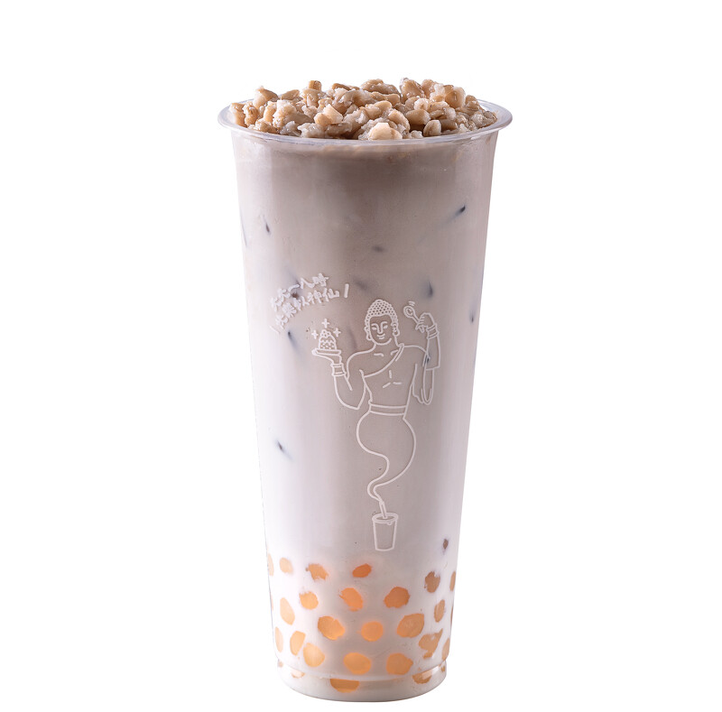 招牌仙草茶搭配牛奶再加入Q彈白玉珍珠,並鋪上濃濃的燕麥奶蓋撒上蕎麥顆粒,每一口都是幸福滋味!