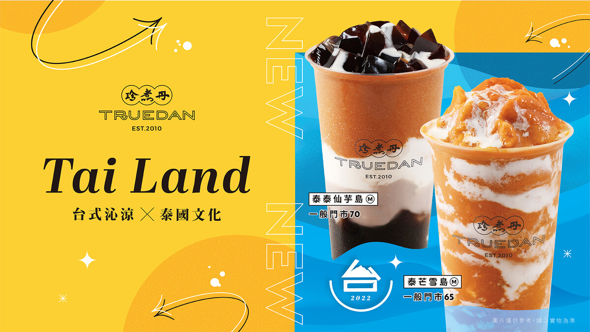 喜歡泰奶的可不能錯過,《珍煮丹》在今年夏季推出「Tai Land」系列,分別有「泰芒雪島」以及「泰泰仙芋島」,其中「泰芒雪島」選用溫順甘甜的錫蘭紅茶做為基底,加上厚實輕盈的雲朵奶霜與芒果果泥,橘白漸層也是本季打卡焦點。