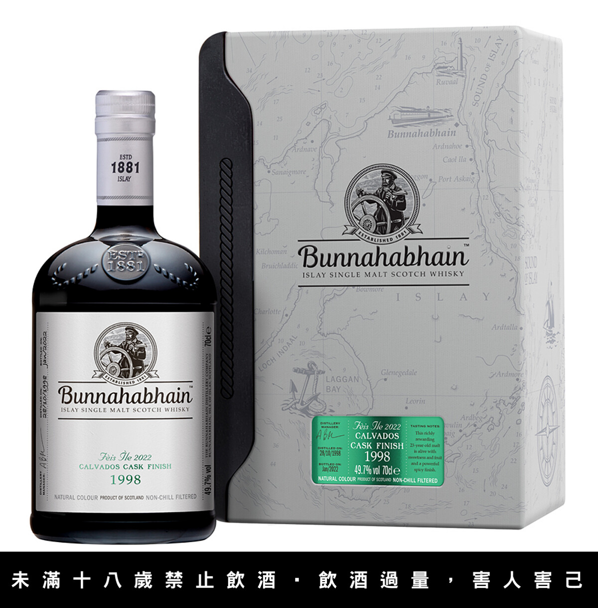 同時也發表了兩款新品,皆是2022艾雷島嘉年華限定版威士忌,分別為充滿個性風味的「布納哈本1998法國蘋果白蘭地桶」,酒款在布納哈本海岸熟成20年,並在最後的2年裝填於 Calvados Cask 白蘭地酒桶中,將來自法國高盧的影響滲透進每一滴金黃色香甜的威士忌中;酒呈黃褐色,聞起來有大麥糖、梨糖和太妃蘋果的香氣,具有青蘋果、梨糖和太妃糖的口感,尾韻中縈繞著揮之不去的花香。