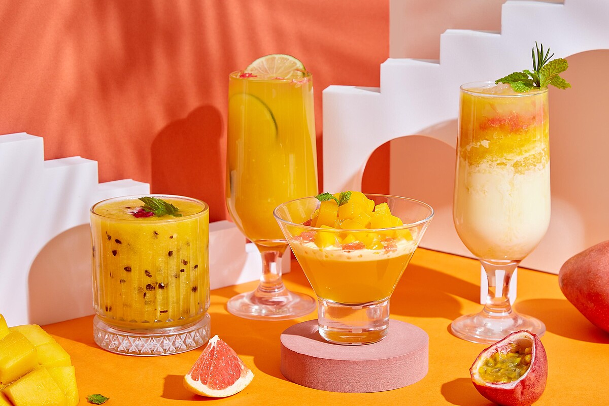 芒果與不同水果的混搭,呈現出各具風情的特調飲品。既可嘗到飽滿的鮮果顆粒,又能感受濃濃的熱帶風情滋味!