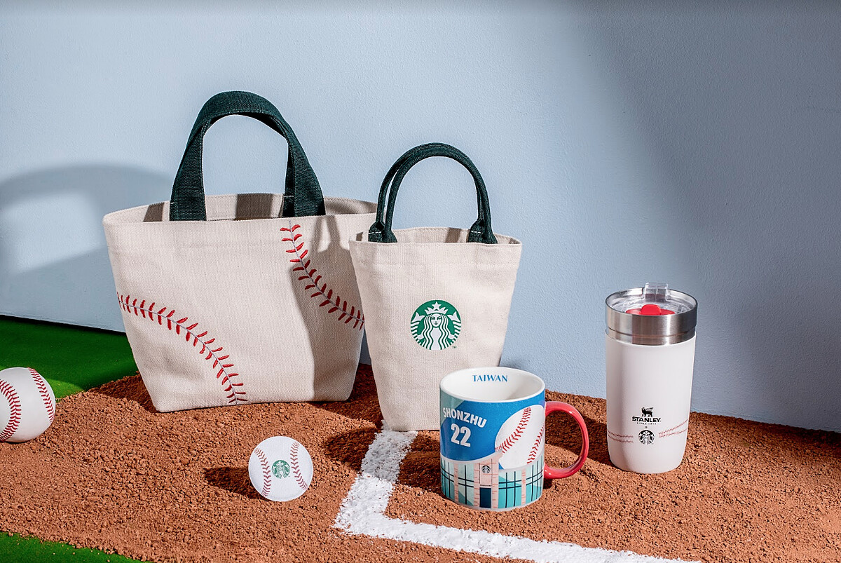 可以看到門市充滿曲線、圓融、流線、棒球元素,因此這次特別推出一系列包括馬克杯、不鏽鋼杯、提袋等實用的器物,都有著棒球設計,不鏽鋼杯更特別在杯蓋與杯底跳色搭配,有著夏日豔陽的活力,提袋及隨行杯袋等則運用棒球經典縫線設計。