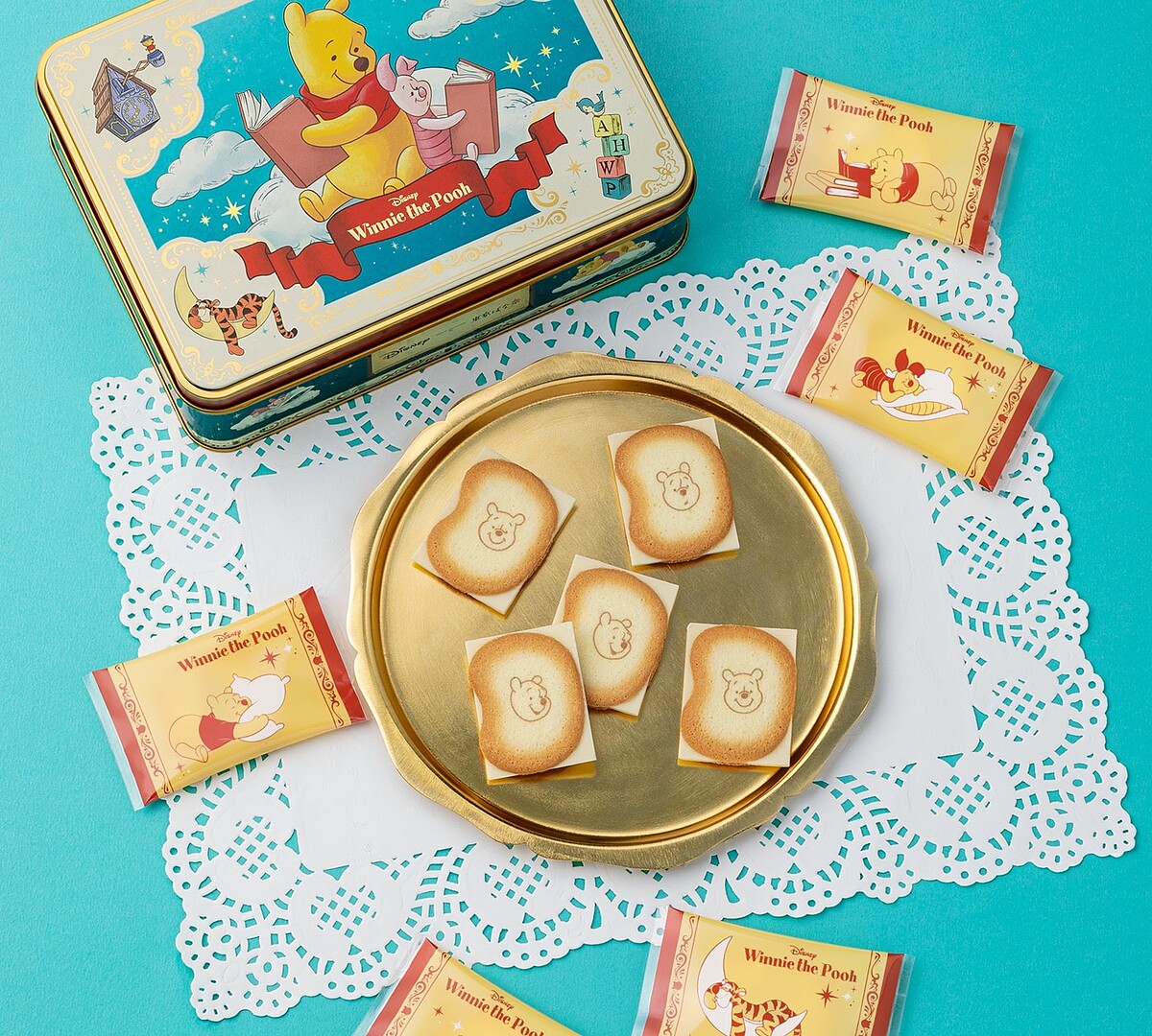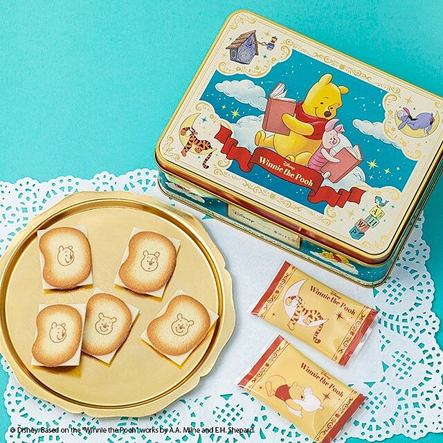 除了超療癒的小熊維尼蜂蜜蛋糕外,Tokyo Banana還有推出一款小熊維尼白巧克力餅乾,外觀的鐵盒上面印著小熊維尼與好友們,之後用來收納小物也很實用!