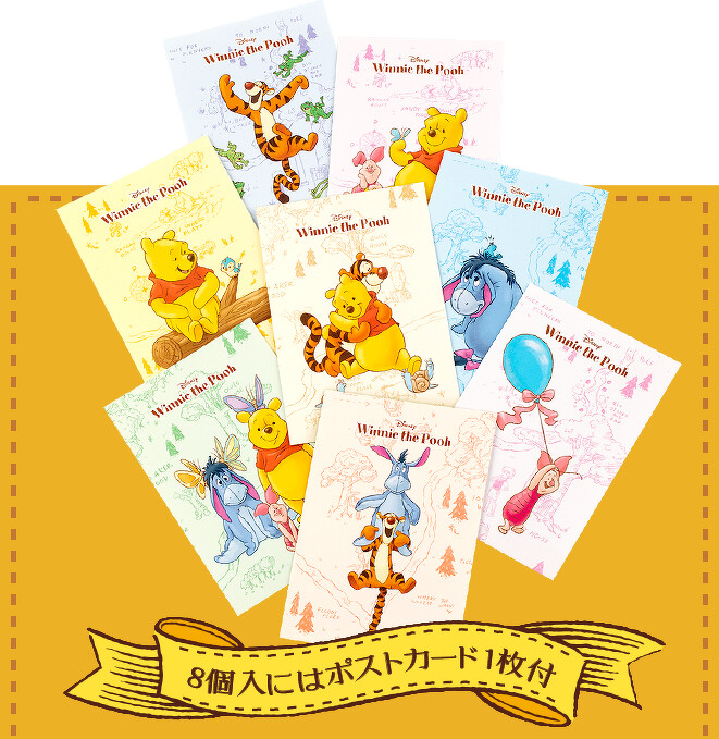 而小熊維尼蜂蜜蛋糕分別有4入與8入包裝,購買8入包裝還會再隨機贈送一張迪士尼官方「小熊維尼明信片」。