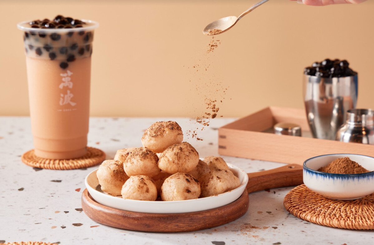 除了「啵霸辣奶鍋」外,甜點部分則推出「萬波奶茶炸雲朵」以及「萬波奶茶霜淇淋」,其中「萬波奶茶炸雲朵」即是翻玩傳統小吃白糖粿,在麵糰中揉入微甜清香的紅茶,並灑上茶粉加以點綴,吃起來又酥又Q絕對上癮。