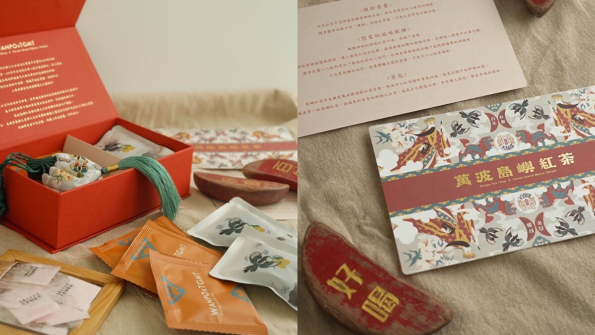 此外,禮盒內還有品牌嚴選的台灣金萱紅茶「萬波島嶼紅茶包」以及讓月老公公呷甜甜的「島嶼檸檬茶王風味軟糖」,有了百年大天后宮加持,想必人緣也會跟著水漲船高。