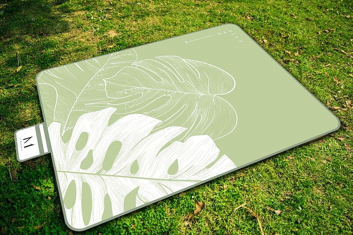 除了雙人份美式輕食飲品外,這次更附有「仲夏野餐墊」,材質上特意挑選透氣耐用的牛津布加上防水塗層,四周的包邊處理讓野餐墊更加耐拉扯,加上酪梨綠與米白色打底,設計簡約淡雅,野餐墊摺疊收納後僅有A4大小,還有貼心提把設計,好帶又好收。