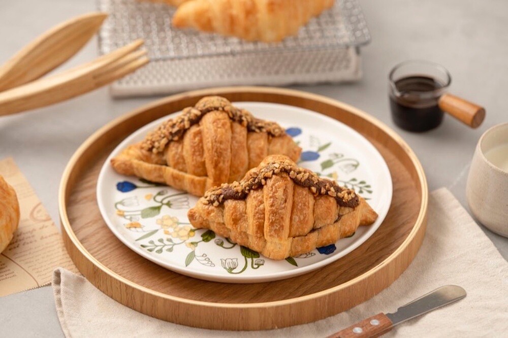 而花生巧克力可頌則是以超濃郁的福源花生醬搭配法國可可巴芮巧克力,鹹甜濃郁的滋味,讓人一吃就愛上!