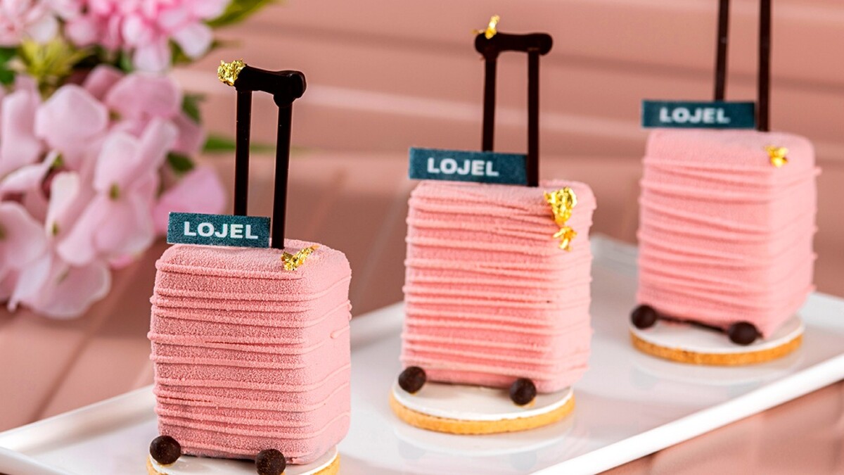 自7/9~8/28聯名的「夢幻盛夏之旅下午茶」,由德籍甜點主廚Frank Braun精心設計,12道鹹甜點有加入燉煮澳洲牛肉、以花生碎與魚露做成的泰國皇室小點「馬霍」、土耳其宮廷甜點「巴克拉瓦果仁蜜餅」、法式杜斯巧克力米布丁、新英格蘭龍蝦奶油布里歐等,更還有著LOJEL CUBO行李箱粉嫩外型的瑞士巧克力蛋糕,實在捨不得下肚。