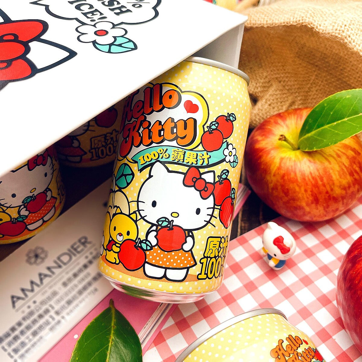 呼叫Kitty迷!擁有多項人氣授權肖像的甜點專家「雅蒙蒂文創烘焙禮品」繼之前推出一系列寶可夢零食、小小兵餅乾、凱蒂貓粽子後,這次推出全新復古農村風Hello Kitty 100%蘋果汁啦!